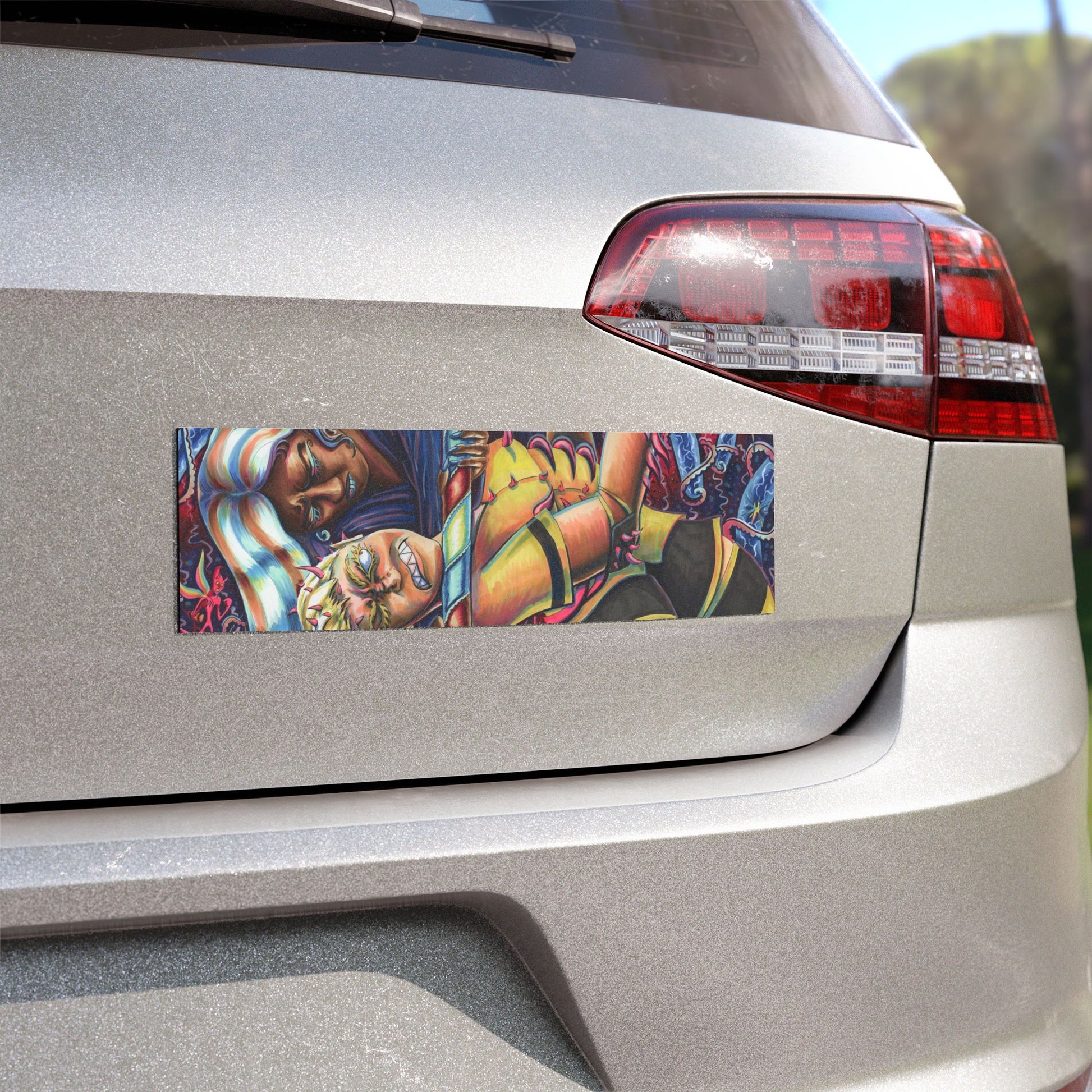 This slim car magnet brings a touch of vivid, psychedelic art to your vehicle. Printed on matte white vinyl with a black magnetic backing, the design’s swirling colors and organic shapes peek through with a slightly textured, handcrafted feel. Built to handle rain, sun, and road grit, it clings securely to metal surfaces while remaining removable without residue. Choose from three sizes to fit bumpers, door panels, or the side of a camper — a subtle way to carry expressive artwork on every drive.