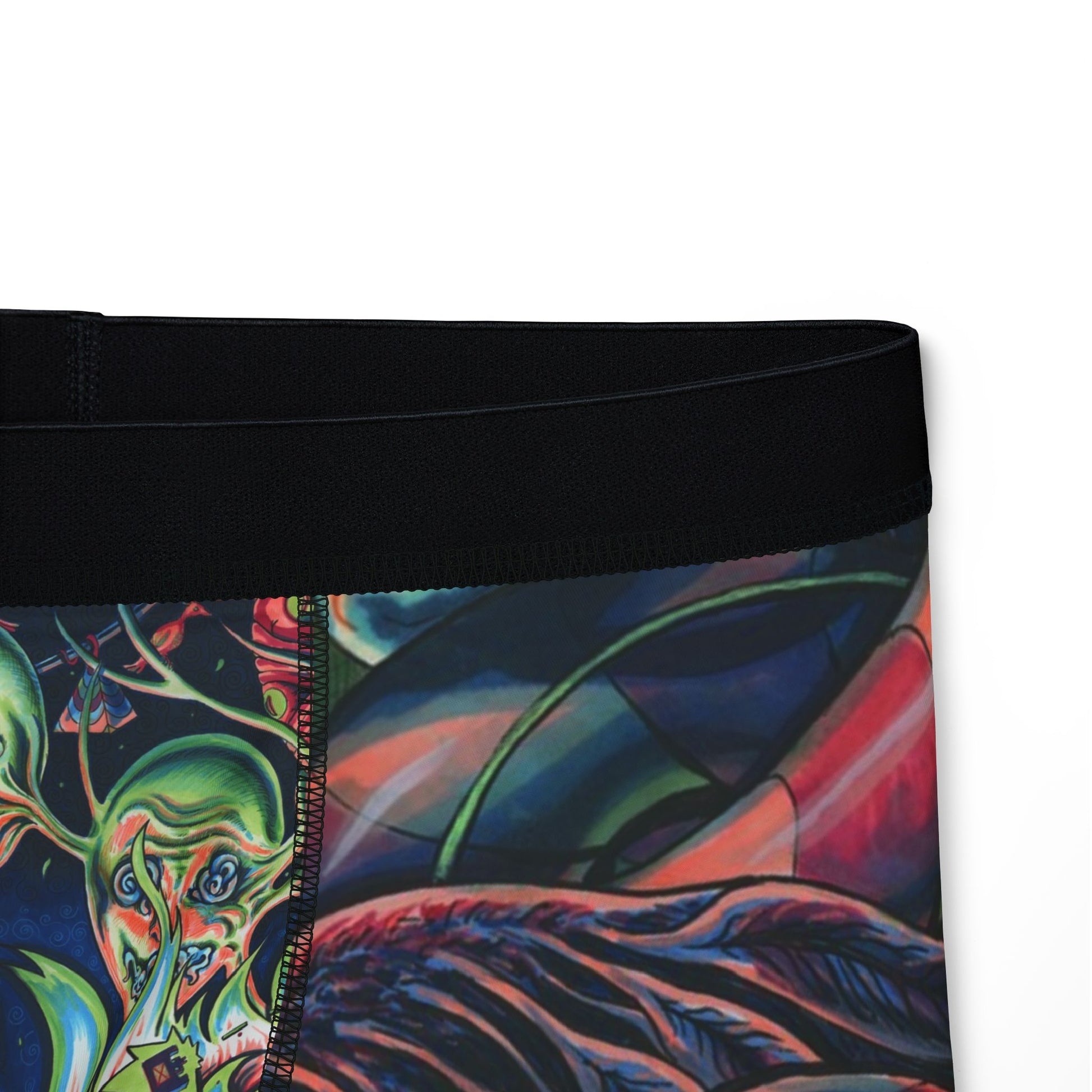 Slide into these boldly printed boxer briefs and feel like your wardrobe finally learned to party. The stretch knit hugs your hips and moves with you, while the vivid, all-over artwork—surreal, layered faces and organic, flowing shapes—brings an offbeat, late-night gallery energy to an everyday essential. Lightweight, quick-drying fabric keeps things breathable and fresh from morning commutes to weekend shows. These boxers are for people who treat undergarments like another canvas: expressive, durable, and quietly confident.